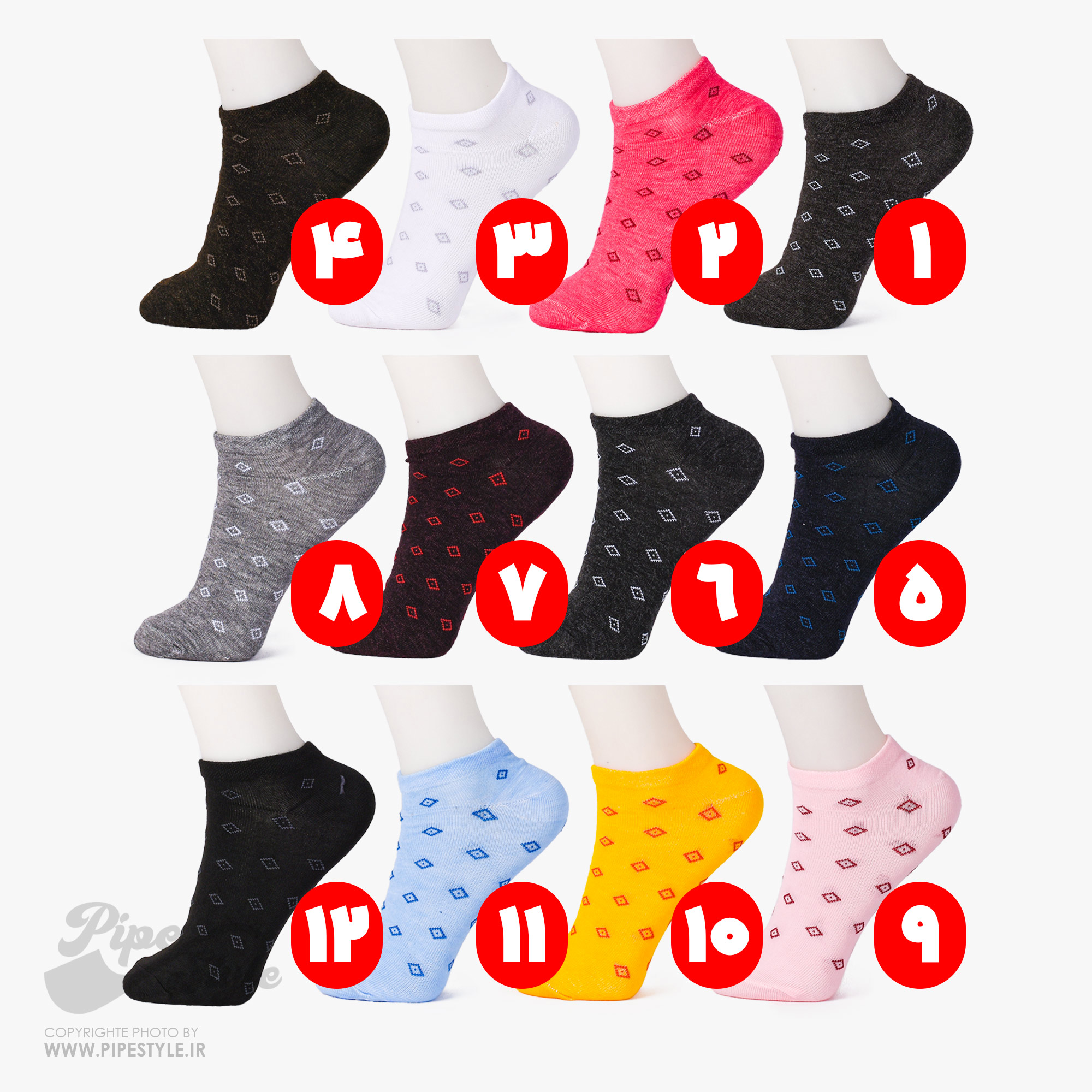 جوراب نیم ساق سه رنگ طرح لبخند